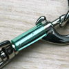 ホームセンターなどで、見つけたチューブをカッターなどで割ってそれを図のように金具に取り付け、その後でキッチン用アルミテープで蒔きます。これで散歩の途中にリードが金具から外れることがなくなりました。ただしお散歩の時は、アルミテープがちゃんとついているか時々よく確認して、安全を確かめて楽しく散歩してください。 |