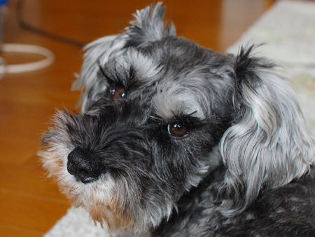 ウィルちゃん (ミニチュア・シュナウザー S&P 牝 六歳) ジョイくん (スタンダード・プードル 牡 四歳) レイラちゃん (ミニチュア・シュナウザー B&W 牝 一歳) 会社の同僚のMさんがミニチュア・シュナウザーのファンと知り、お互い顔を合わせるとミニチュア・シュナウザー話になってしまいます。
